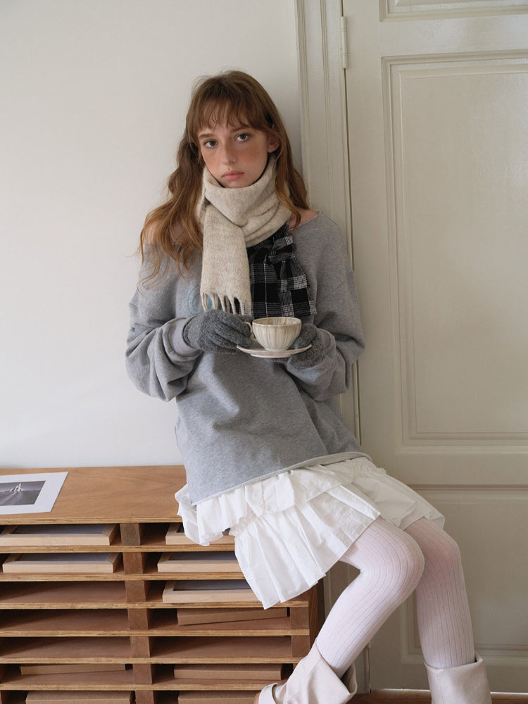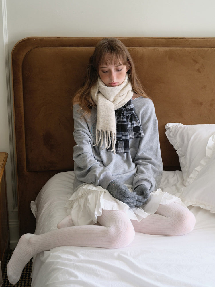 Step up your street style game with this avant-garde patchwork scarf. Channeling the "Grunge Fairy" and "Acubi" aesthetics, this unique accessory features a deconstructed design where a classic wool-blend grey scarf meets a grunge-inspired plaid shirt sleeve. The illusion of a tied flannel shirt adds a layer of subversive cool without the bulk of actual layering. It's the perfect conversation starter to elevate a simple sweatshirt or oversized coat.